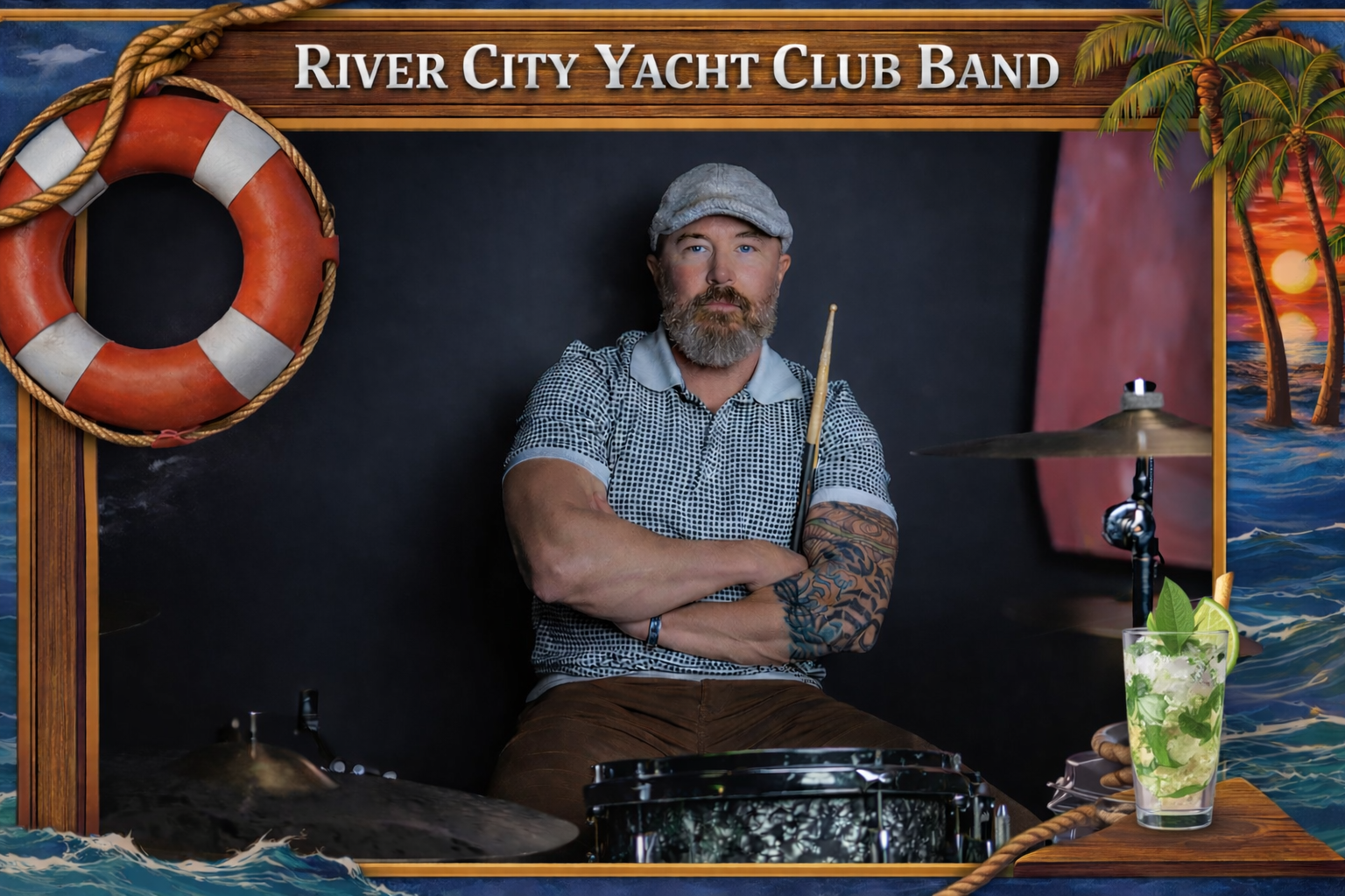 At 45, the call of the drums became impossible to ignore. Tommy returned to music with renewed passion, joining the regional touring band The Fall City Drifters and later collaborating with singer-songwriter Kate Virginia on recordings that earned airplay on local public radio. Today, he is the engine beneath River City Yacht Club Band — laying down the steady, seaworthy foundation that lets the band cruise effortlessly from sunset atmosphere to dance-floor motion. For Tommy, music has no timeline — only rhythm, and the tide that carries it forward.